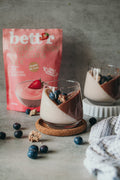 Θυμάστε τη γλυκιά, κρεμώδη απόλαυση της πουτίγκας φράουλας από την παιδική σας ηλικία; Τώρα μπορείτε να απολαύσετε αυτή τη νοσταλγική γεύση με έναν πιο υγιεινό, απόλυτα φυσικό τρόπο με το Bett'r Pudding Mix — έτοιμο σε μόλις ένα λεπτό! Φυσικά πλούσια, φρουτώδης γεύση και ακαταμάχητο άρωμα.