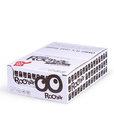 χουρμάδες*, σιρόπι καρύδας*, βούτυρο κακάο*, πρωτεΐνη μπιζελιού* (12%), πρωτεΐνη ρυζιού* (11%), ταχίνι φουντουκιού* (10%), φουντούκια* (6%), τσιπς σοκολάτας* (μάζα κακάο*, ζάχαρη καρύδας*, βούτυρο κακάο*) (6%), σκόνη κακάο*.